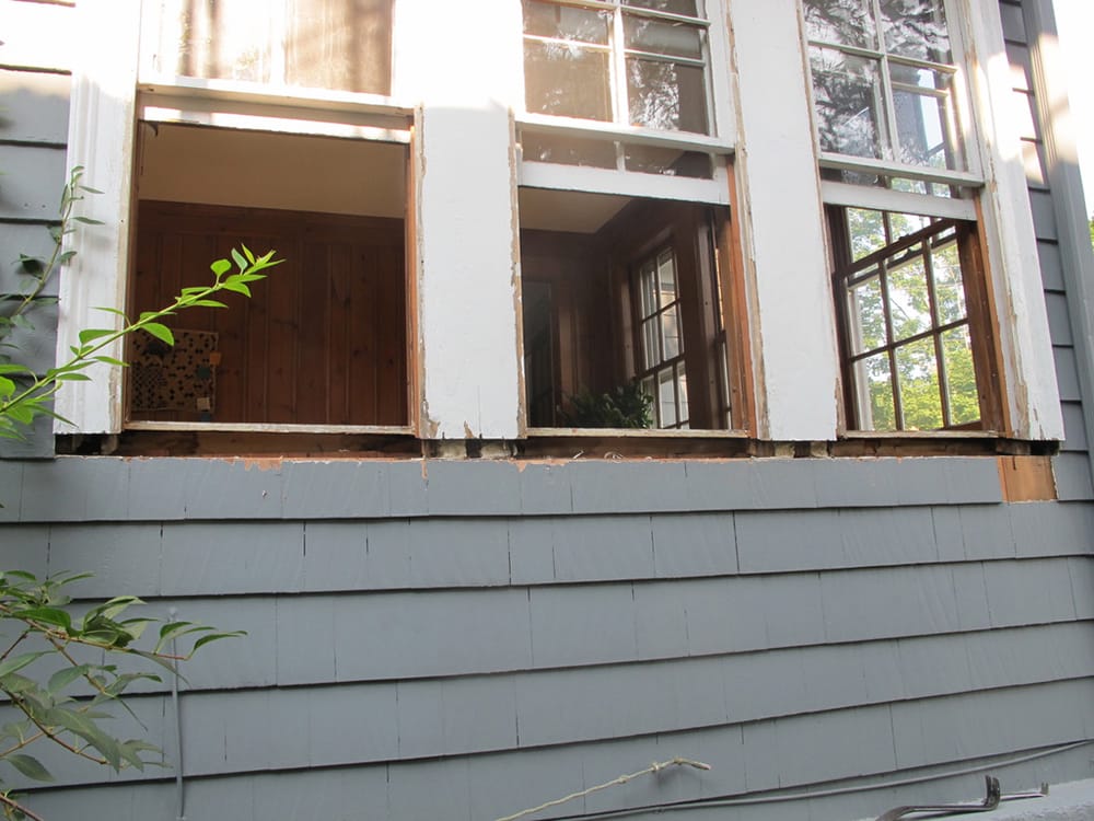 We can often repair window sill rot with wood-epoxy, or by replacing the nosing. With this triple sill, the rot had gone so deep that it was beyond repair and had to be replaced. Almost half the job is removing the rotted sill without damaging any other parts of the window. Though we don’t show it here, we seal the end grain of the window components that come in contact with the new sill, and the new sill is prime painted before it is installed.