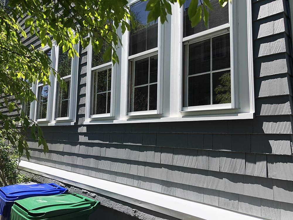 We can often repair window sill rot with wood-epoxy, or by replacing the nosing. With this triple sill, the rot had gone so deep that it was beyond repair and had to be replaced. Almost half the job is removing the rotted sill without damaging any other parts of the window. Though we don’t show it here, we seal the end grain of the window components that come in contact with the new sill, and the new sill is prime painted before it is installed.